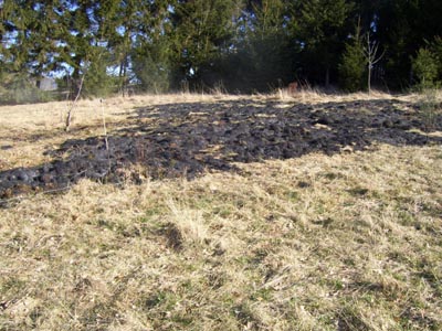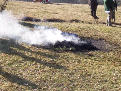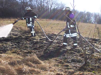 Wir trafen gleichzeitig mit dem Rettungsdienst an der Einsatzstelle ein. Die Person hatte Verbrennungen am ganzen Körper und musste mit dem Rettungshubschrauber in eine Klinik verbracht werden. Es mussten noch 30-40m2 Wiesenfläche abgelöscht werden.